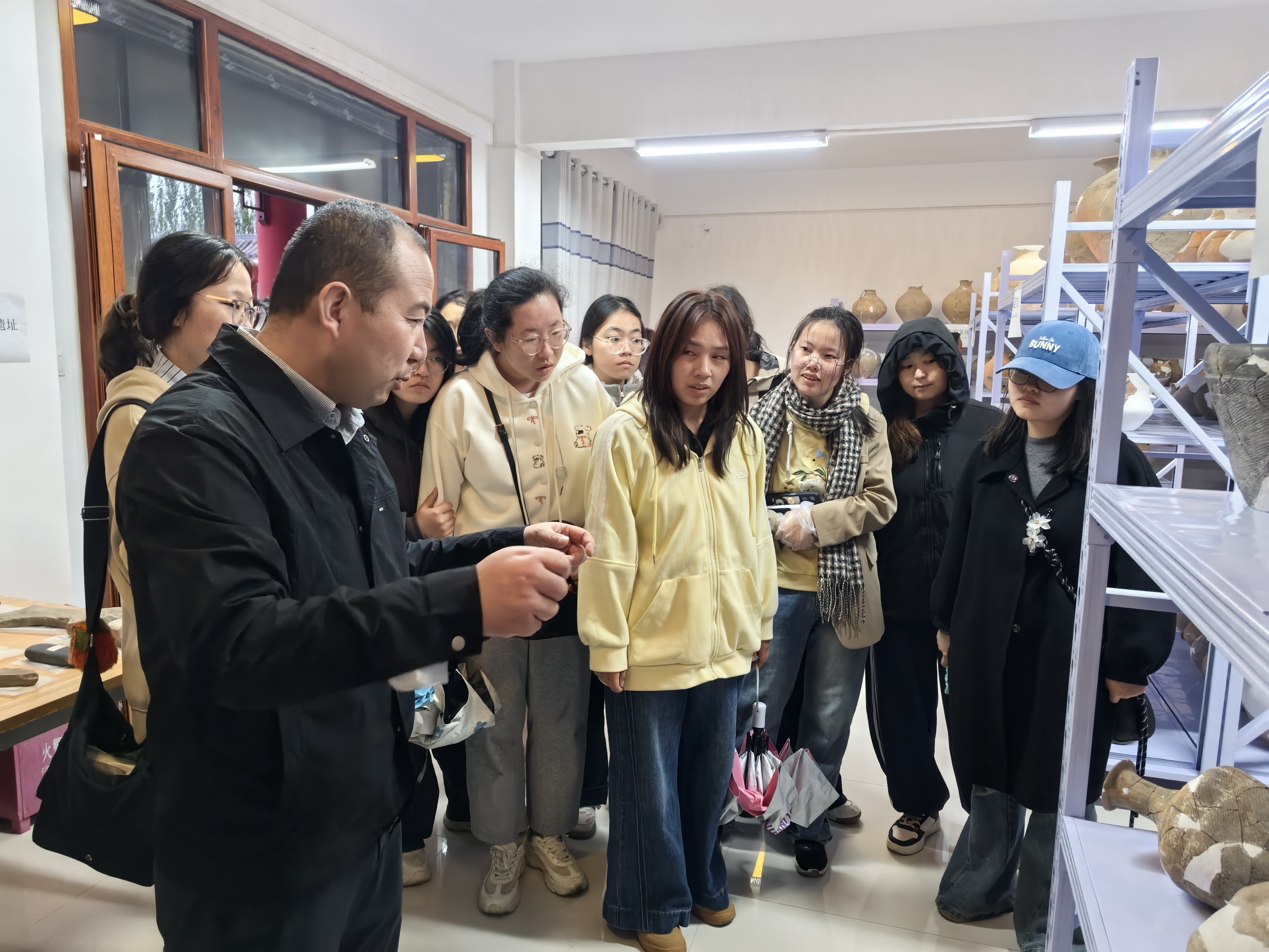 文物考古现场是历史学专业实践的“活课堂”。在姚河塬考古队工作站、宁夏文物考古研究所固原工作站及原州区善家堡春秋战国墓地发掘工地,考古专业人员为同学们系统讲解考古工作流程、文物辨识方法遗产保护利用。同学们近距离观察出土的陶器、青铜器等珍贵文物,直观感受考古工作对还原历史真相揭示中华文明多元一体格局演进的重要意义。