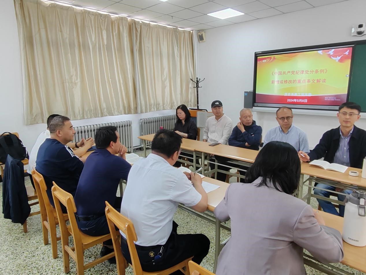 为深入学习贯彻新修订的《中国共产党纪律处分条例》,带动教师党员进一步强化纪律意识,加强自我管理和约束,提高政治免疫力,5月8日下午,历史系教工党支部在兰山一教C504教室以党纪学习教育学习班的形式对《中国共产党纪律处分条例》新增或修改的重点条文进行了学习和交流。