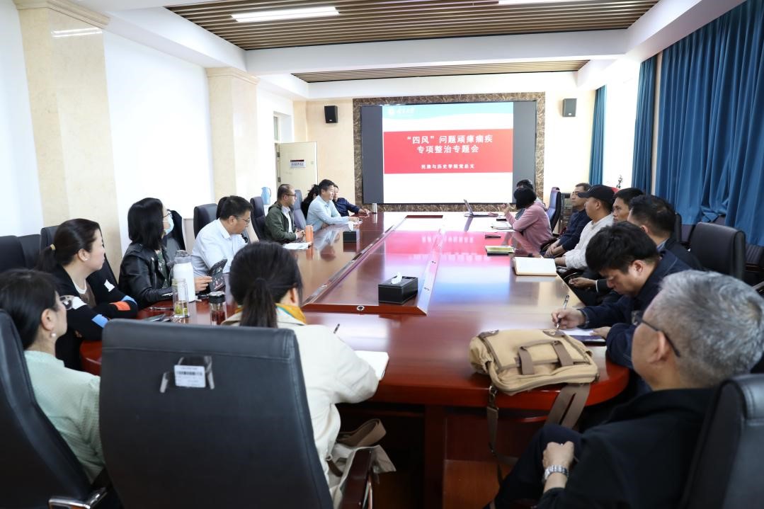 召开深入开展“四风”问题顽瘴痼疾专项整治工作会,学院领班子、各支部书记、学位点负责人参。党总支书记副书记于光建主持会议。
