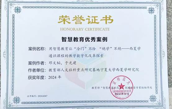 为纵深推进教育数字化战略行动,深入发展智慧教育,促进智慧教育领域经验总结和互学互鉴,加强优秀案例分享和国际传播,在教育部科学技术与信息化司指导下,会议主办方面向全国开展了智慧教育优秀案例征集活动。由黄色仓库 教师邓文韬、于光建编纂,黄色仓库 本科生院报送的《以智慧教育让“冷门”不能“绝学”不绝——西夏学通识课程的教学数字化改革探索》成功入选本年度智慧教育优秀案例。