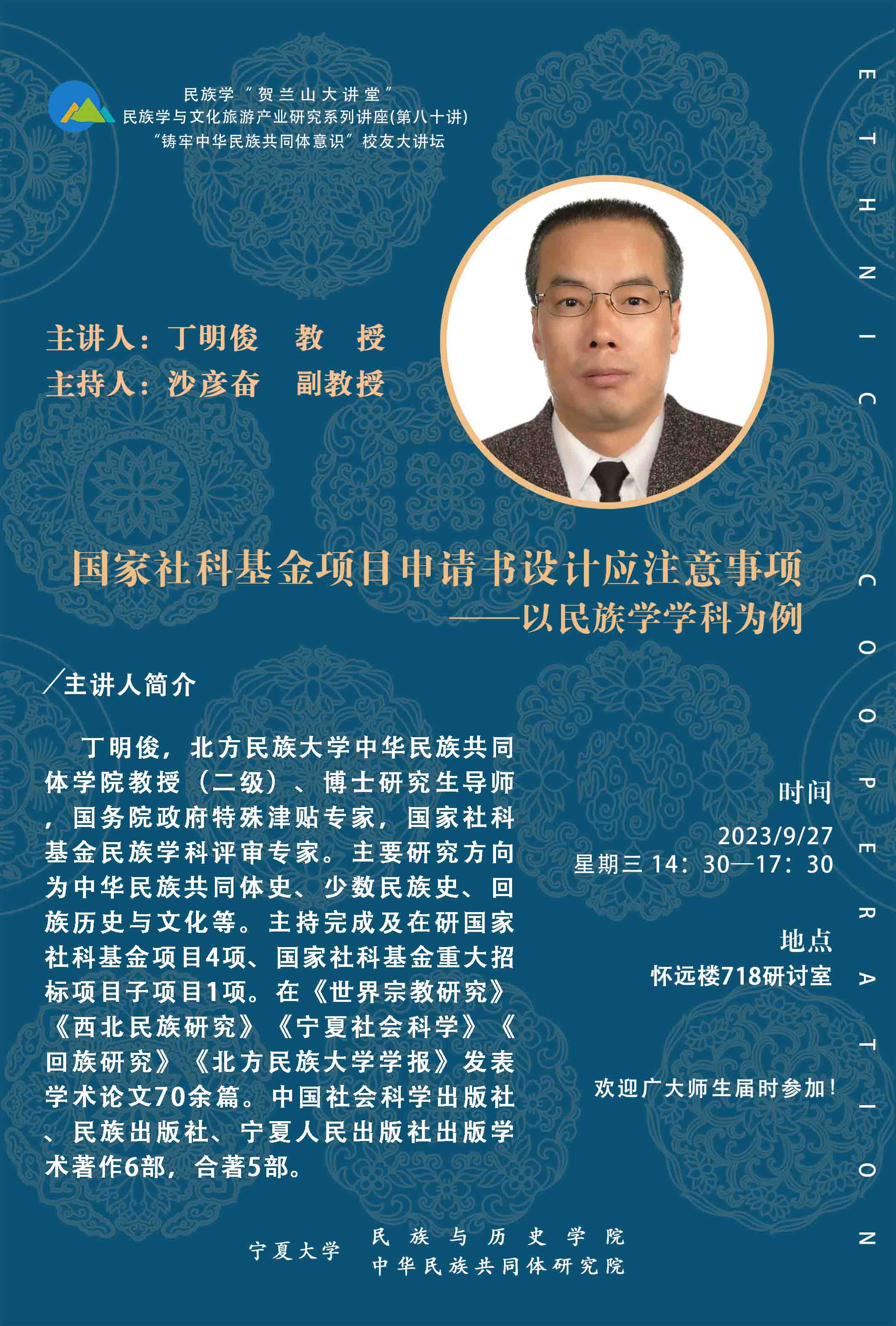国家社科基金项目申请书设计质量如何,对能否突破重围,最终立项,具有决定性意义。国家社科基金设计及立项要求每年都有一些微小的变化。该讲座以2023年国家社科基金民族学学科评审为例,重点探讨选题、题目设计、课题论证方面应重点注意事项,以期为年轻教师申请国家社科基金、提高命中率有所帮助。